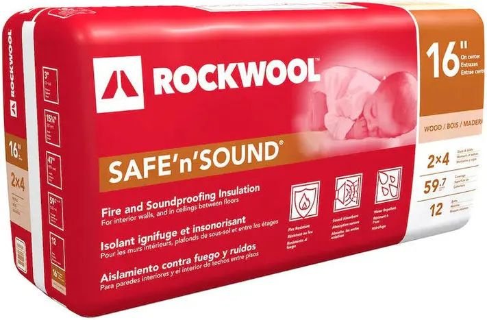 ROCKWOOL Safe’n’Sound 15.25x47x3 (59.7 sq ft) is a stone wool acoustic insulation batt designed for interior walls, ceilings, and floor assemblies. It provides excellent sound absorption, fire resistance, and moisture resistance. Sized at 15.25x47x3, it is ideal for wood and steel stud framing applications.